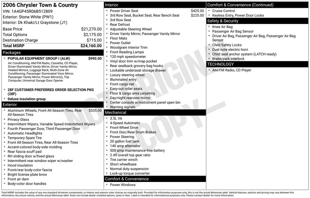 Stone White CC (Fleet) 2006 Chrysler Town & Country 4D Passenger Van FWD 3.3L V6 OHV 19/26 City/Highway MPG www.corwinwholesale.com , Family Driven for over 100 Years! Excellent selection of Used Vehicles!